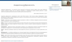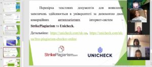 Здобувачі дізналися про інструменти перевірки академічних робіт за допомогою систем StrikePlagiarism і Unicheck, а також про роль бібліотеки університету як осередку академічної доброчесності, що підтримує студентів у пошуку якісних джерел і дотриманні етичних стандартів.