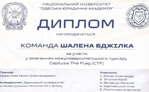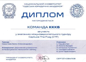 Дві команди студентів факультету інформаційних технологій та кібербезпеки Державного університету інтелектуальних технологій і зв’язку взяли участь у масштабному міжуніверситетському турнірі з кібербезпеки у форматі Capture The Flag (CTF), що відбувся на базі Національного університету «Одеська юридична академія».