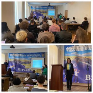 Відповідальний секретар приймальної комісії Марина Шевченко та заступник відповідального секретаря Антон Розмариця надали гостям вичерпну інформацію щодо особливостей вступної кампанії 2026 року, відповіли на запитання та роз’яснили ключові етапи подання документів.