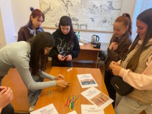 Інтерактивна частина зустрічі передбачала командну роботу та виконання практичної вправи, під час якої учасники, розв’язуючи поставлене завдання, інтуїтивно застосовували різні стратегії поведінки. Це дозволило наочно продемонструвати, як формуються та проявляються копінг-реакції у реальних умовах взаємодії.