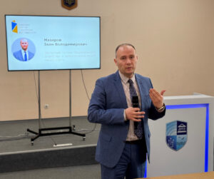 Комп’ютерні класи та освітні можливості кафедри інформаційних та комп’ютерних систем представив Роман Царьов, кандидат технічних наук, доцент, в.о. завідувача кафедри інформаційних та комп’ютерних систем, який розповів про підготовку фахівців за сучасними ІТ-напрямами.