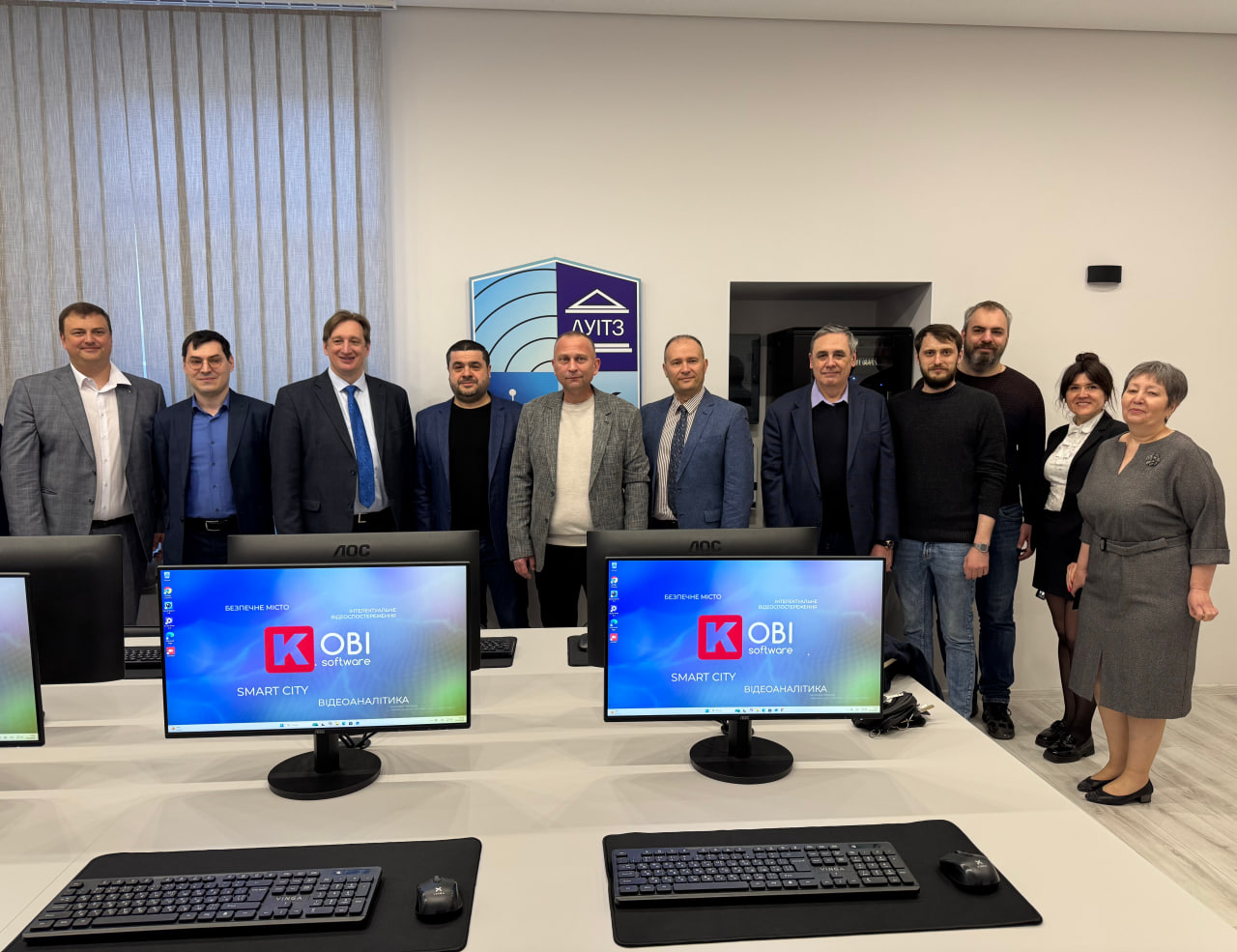 Сучасну навчальну лабораторію з вивчення систем відеоаналітики «Проєктна лабораторія Kobi Software: полігон із сучасних систем відеоаналітики» презентували Сергій Стайкуца, кандидат філософських наук, доцент кафедри КБ та ТЗІ, помічник декана ФІТК з роботи з партнерами і стейкхолдерами, та Максим Івахненко, старший викладач кафедри КБ та ТЗІ. Під час екскурсії гостям продемонстрували, як працюють технології відеоспостереження, розпізнавання облич та інші сучасні інструменти відеоаналітики.