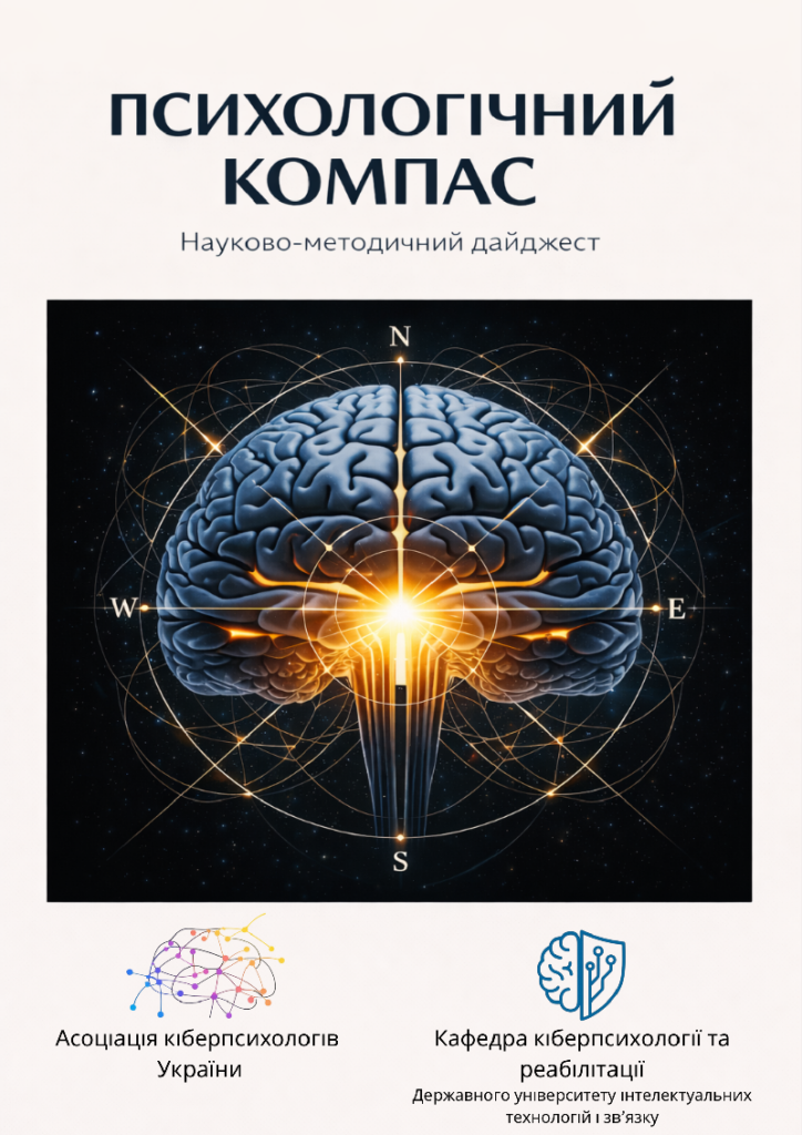 «Психологічний компас» – це науково-методичний дайджест, присвячений сучасним напрямам розвитку психології в умовах цифрової трансформації суспільства. Видання орієнтоване на фахівців у галузі психології, кіберпсихології, психотерапії, реабілітації, а також на науково-педагогічних працівників і здобувачів вищої освіти.